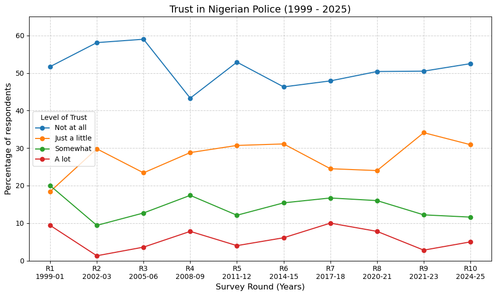 Research shows that trust in public institutions is fragile where governments repress dissent instead of delivering change. Nigerians, according to Afrobarometer data, are among the least trusting citizens in Africa when it comes to the police, the courts, and electoral authorities.